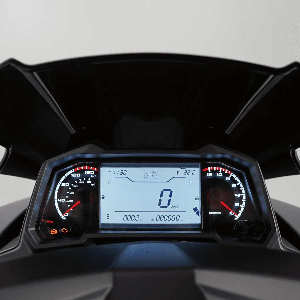 Vieste 249 sürüş sırasında ihtiyaç duyacağınız tüm verileri size sunan eşsiz bir LCD gösterge paneline sahiptir.